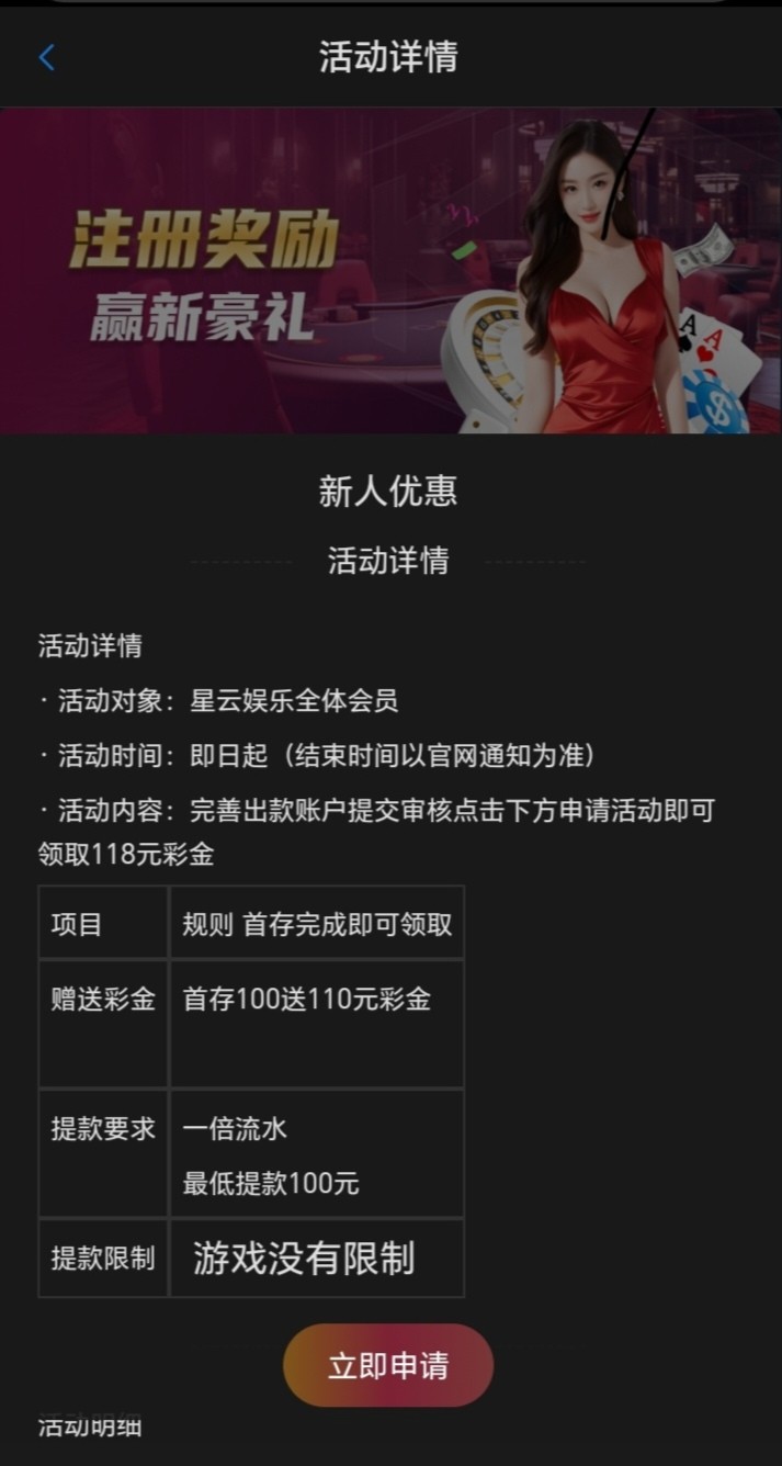 【星云娱乐】注册绑卡送18