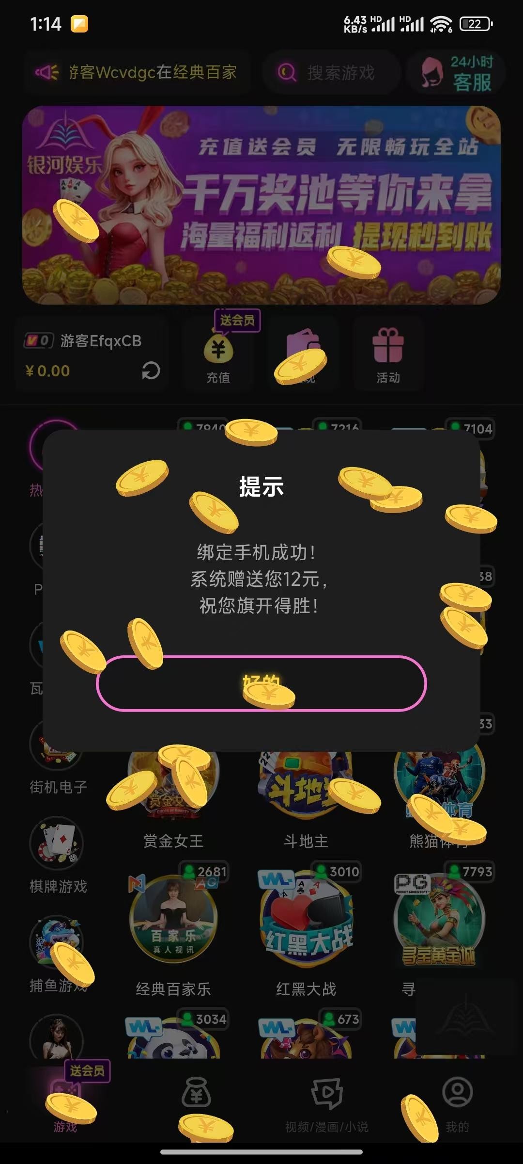新用户下载注册绑定手机号自动送12元。