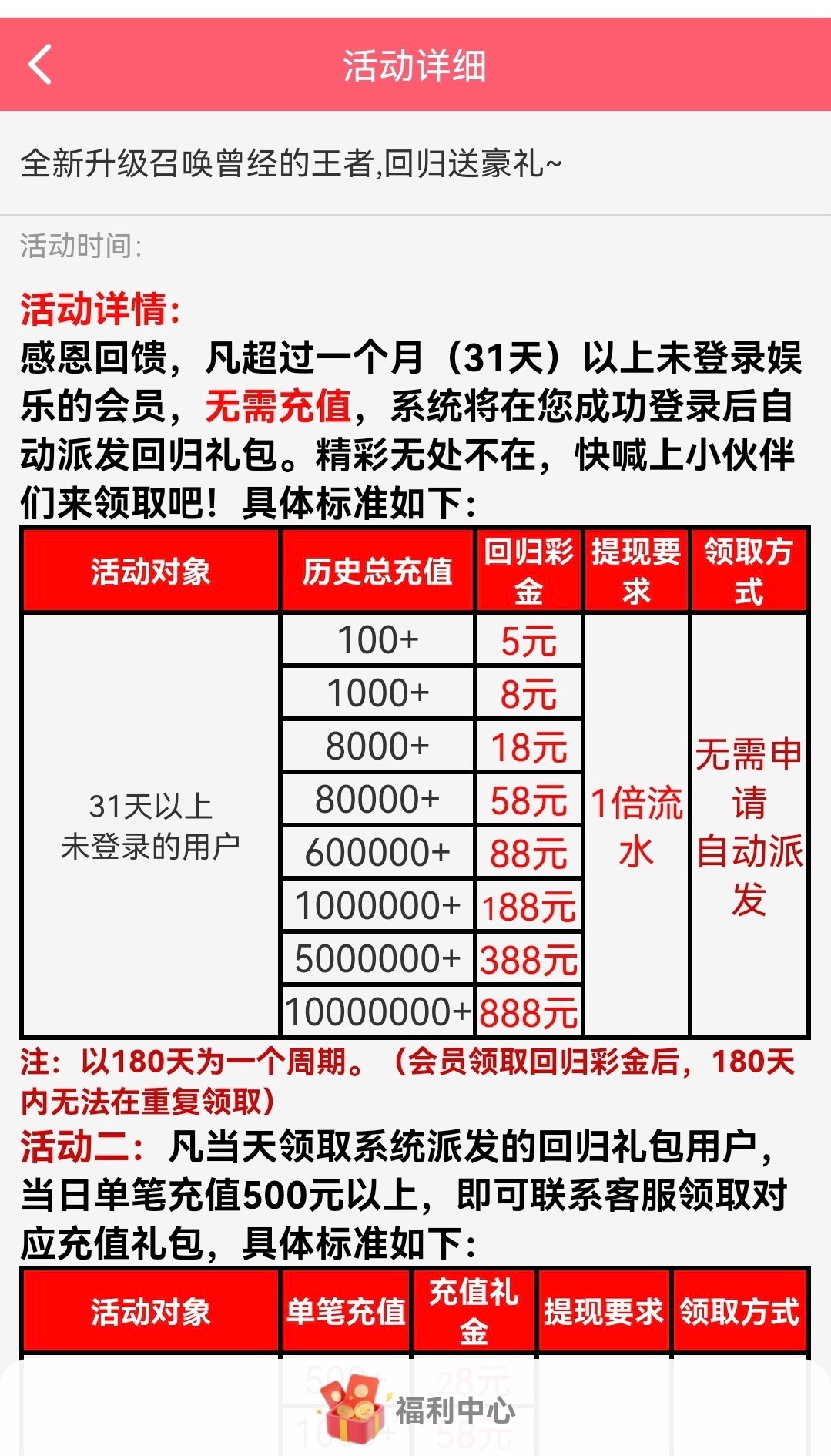 一个月没登录的,并且历史充值过,按照充值金额等级回馈,没号和有号没充过的,不用去浪费时间