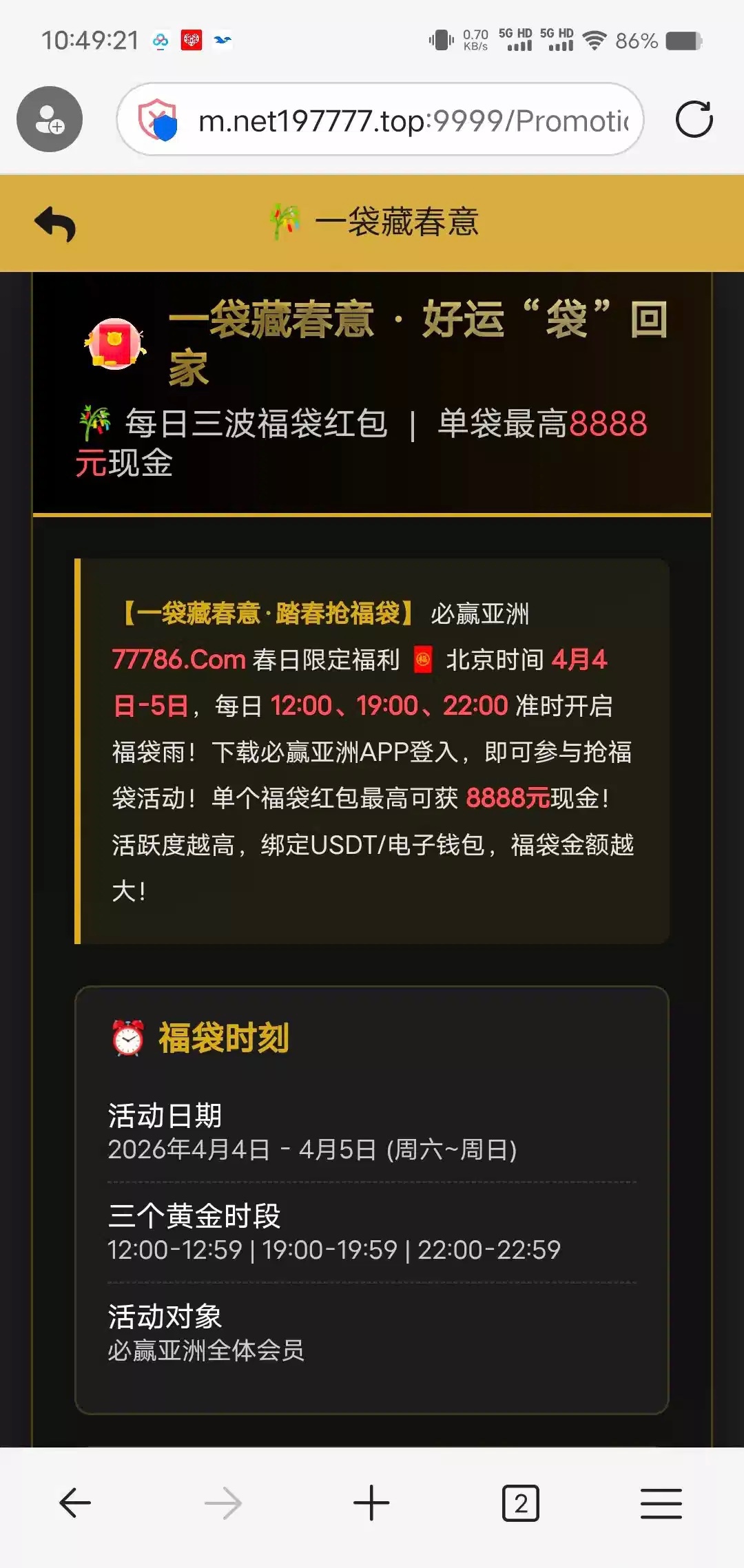 北京时间 4月4日-5日,每日 12:00、19:00、22:00,每天3次。网址197.cc 77786.com